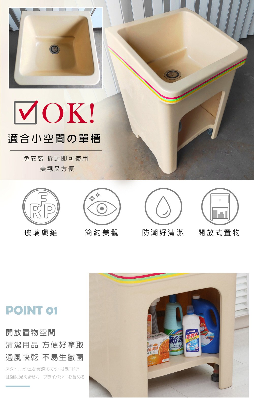 【Abis】日式防水防潮FRP玻璃纖維單槽大型75CM洗衣槽-1入