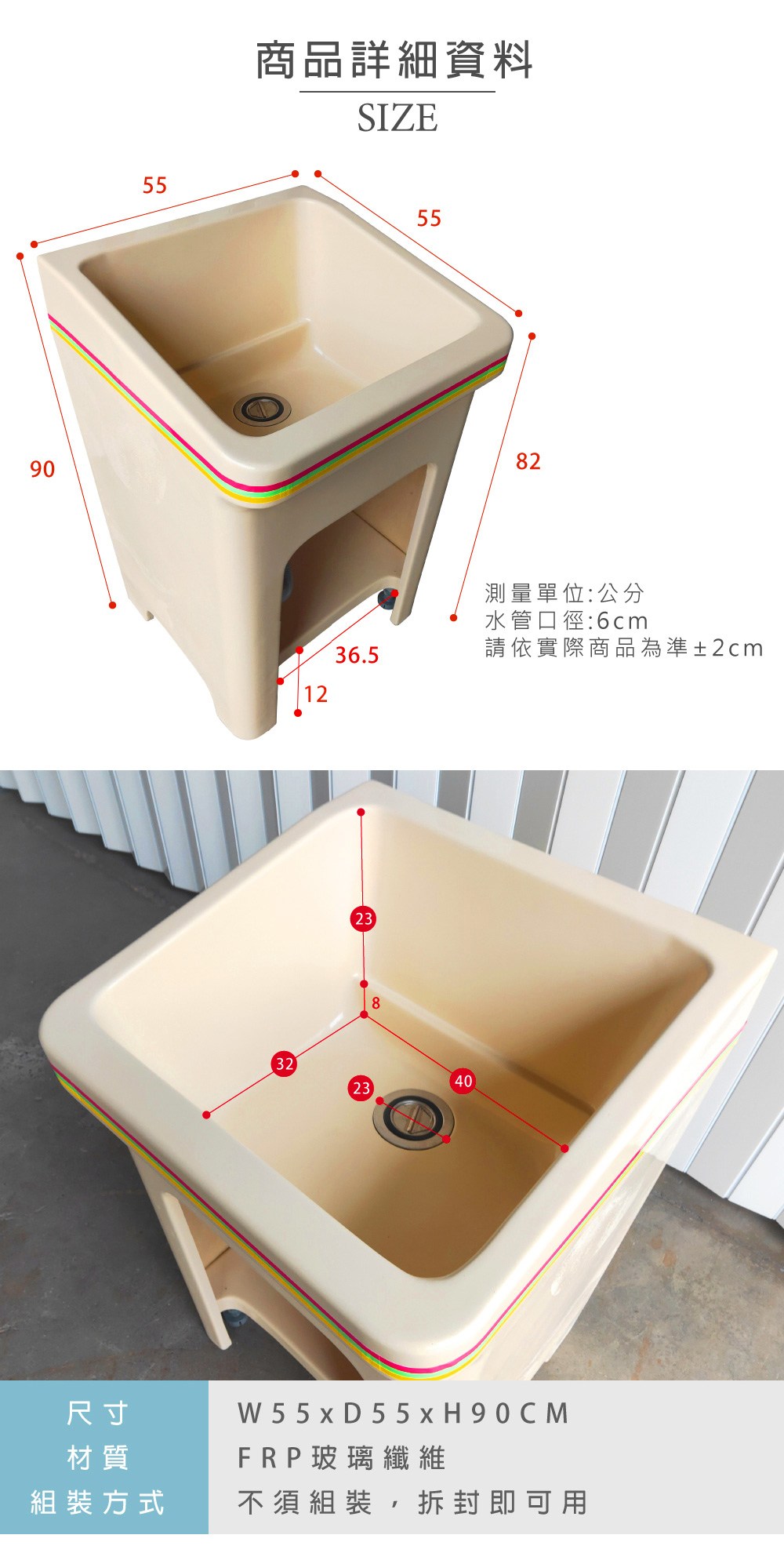 【Abis】日式防水防潮FRP玻璃纖維單槽小型55CM洗衣槽-2入