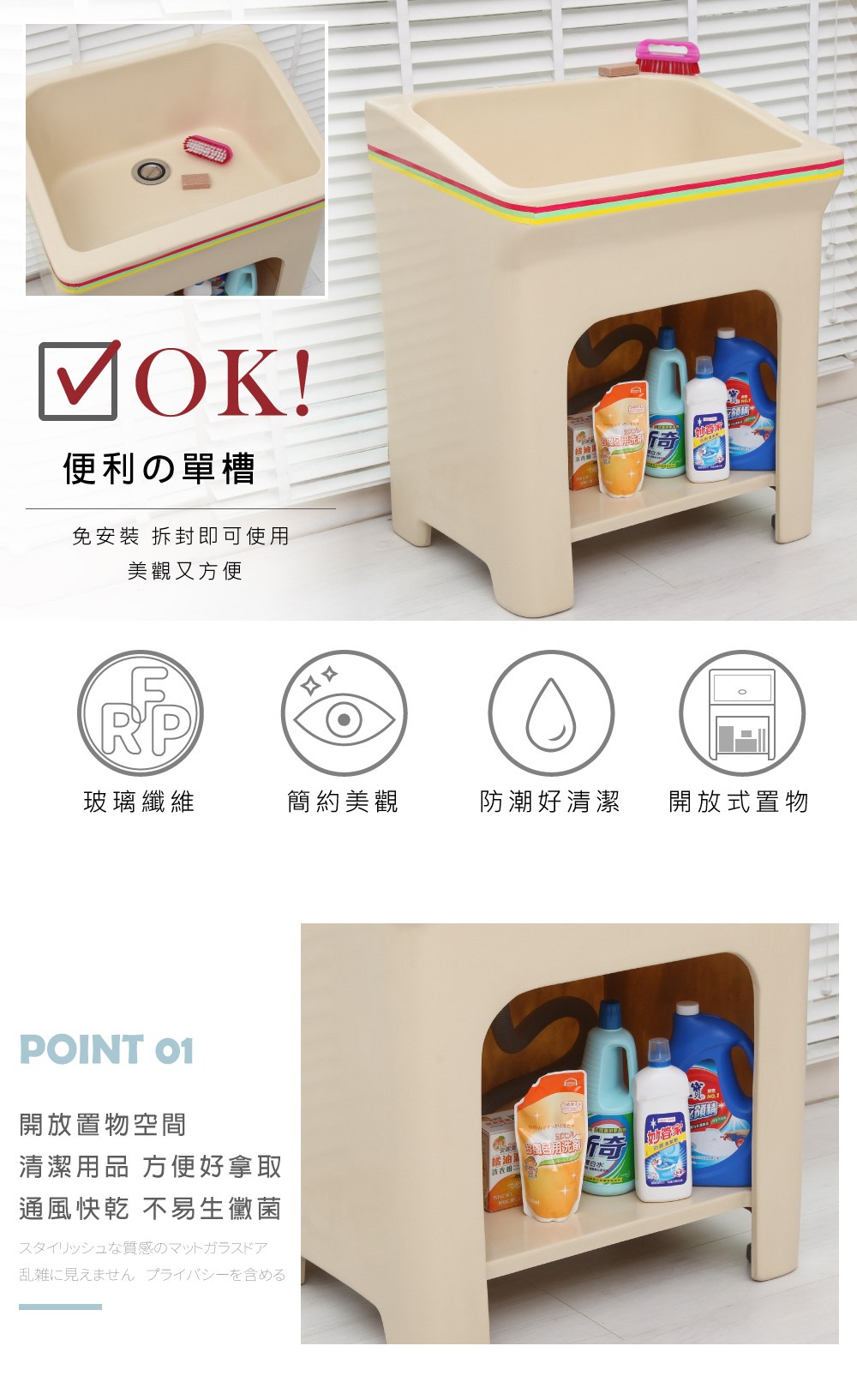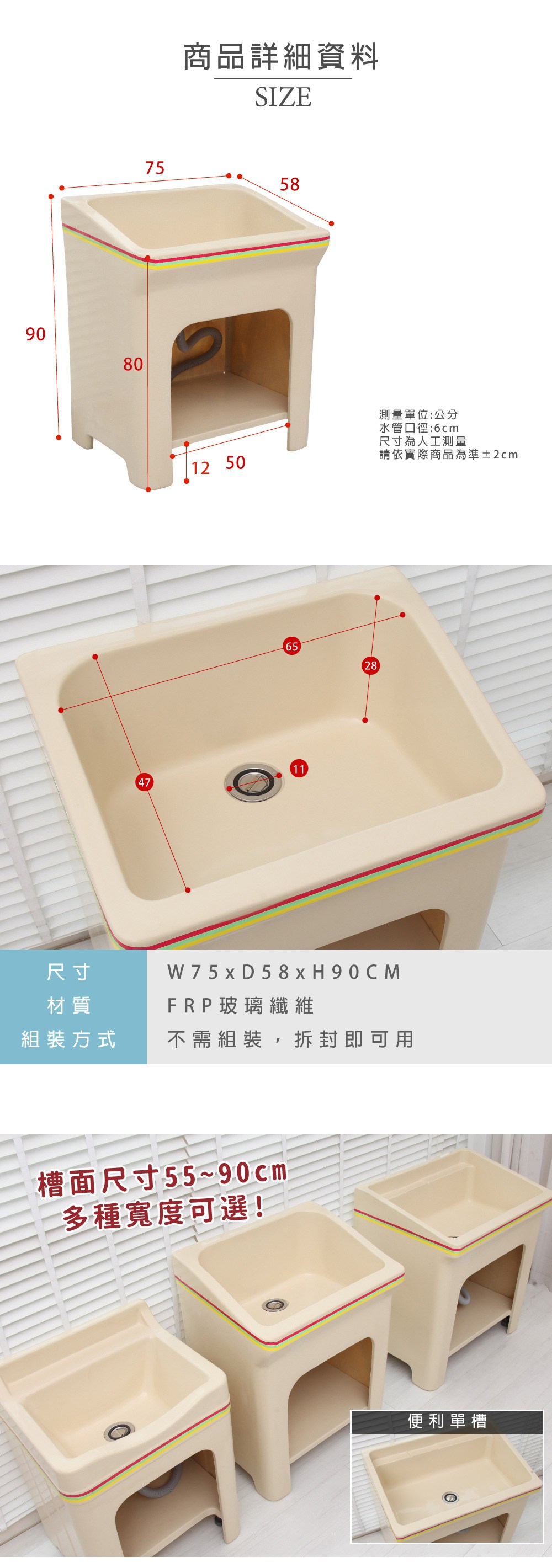 【Abis】日式防水防潮FRP玻璃纖維單槽大型75CM洗衣槽-1入