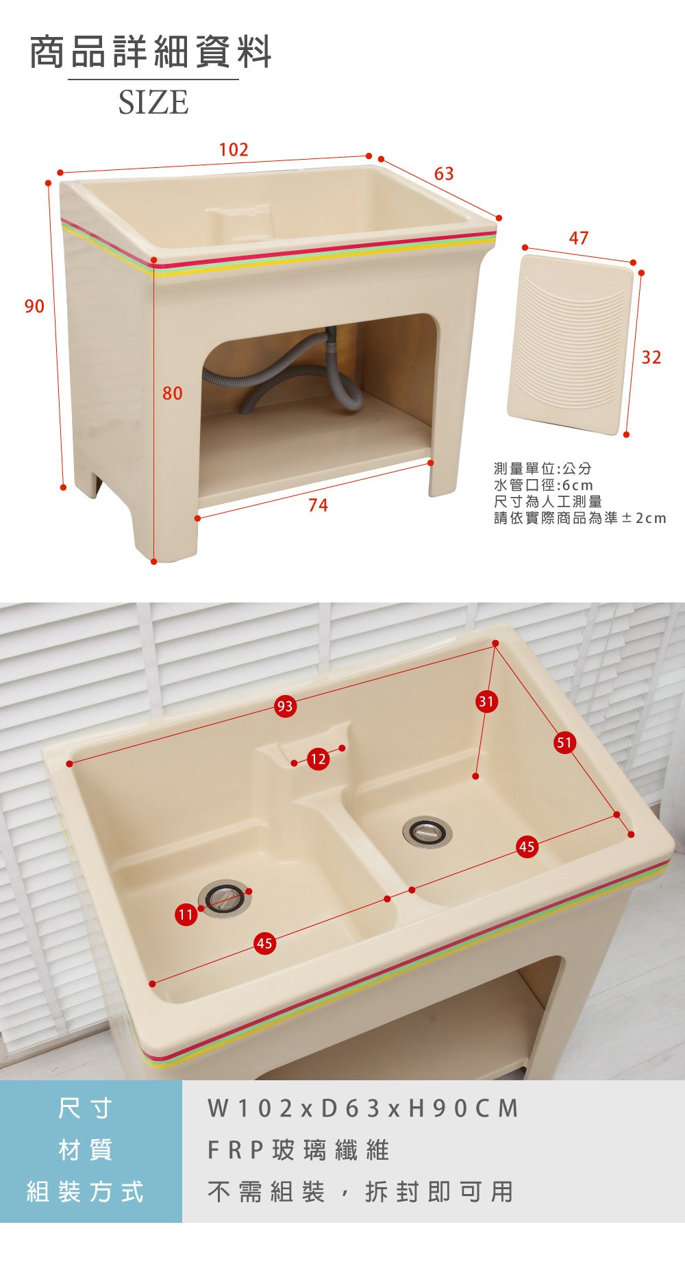 【Abis】日式FRP玻璃纖維一體成型單槽加大型90CM洗衣槽-2入