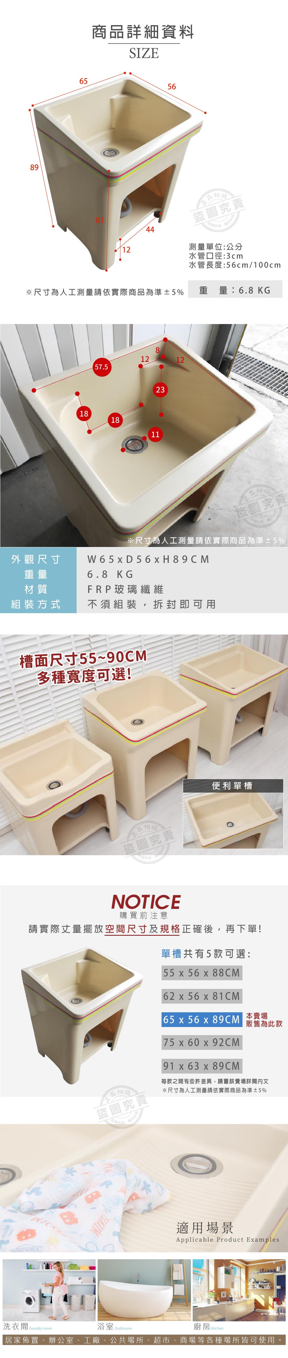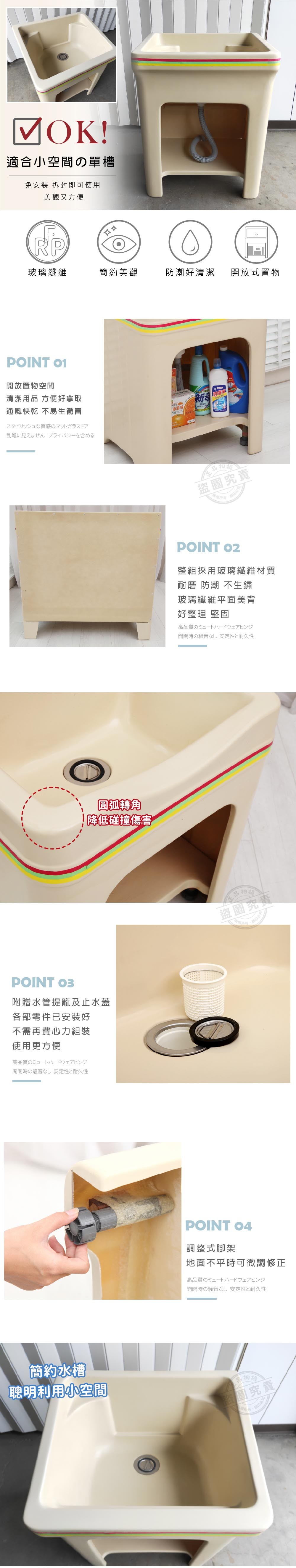 【Abis】日式防水防潮FRP玻璃纖維單槽中型62CM洗衣槽-1入