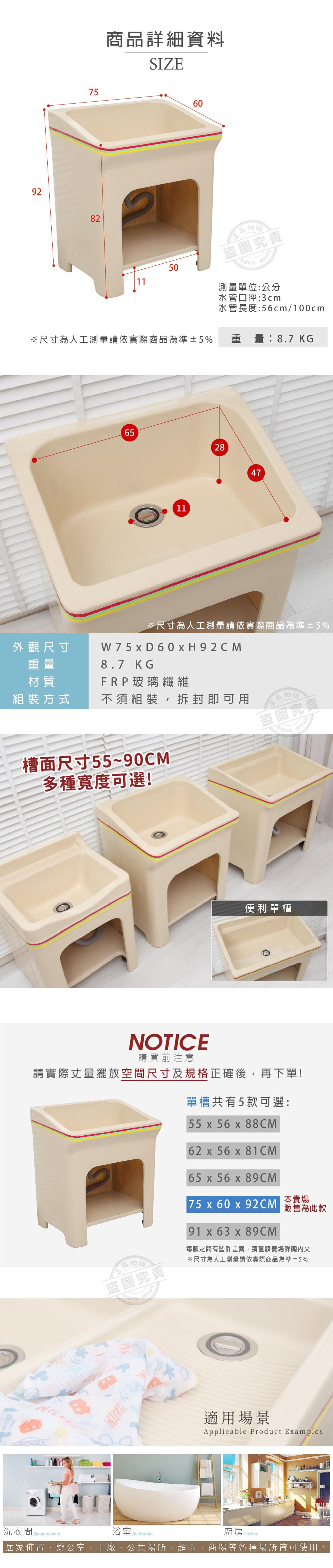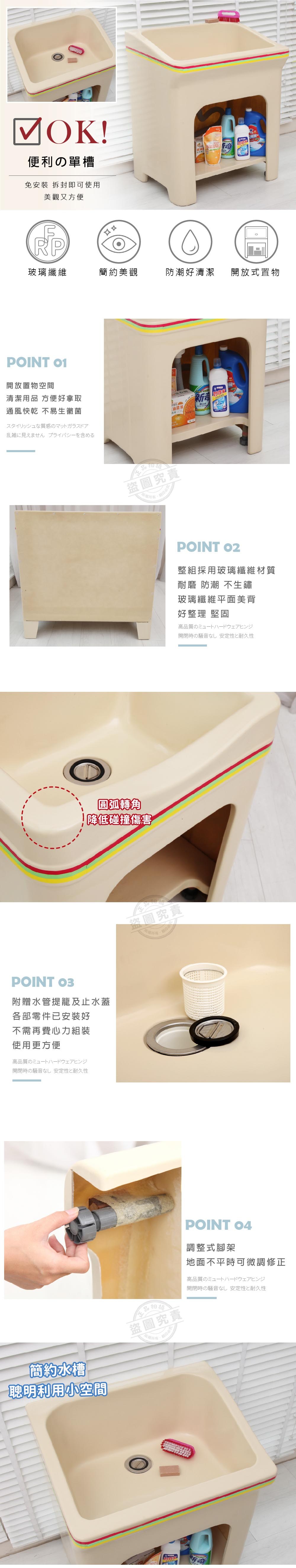 【Abis】日式防水防潮FRP玻璃纖維單槽大型75CM洗衣槽-1入
