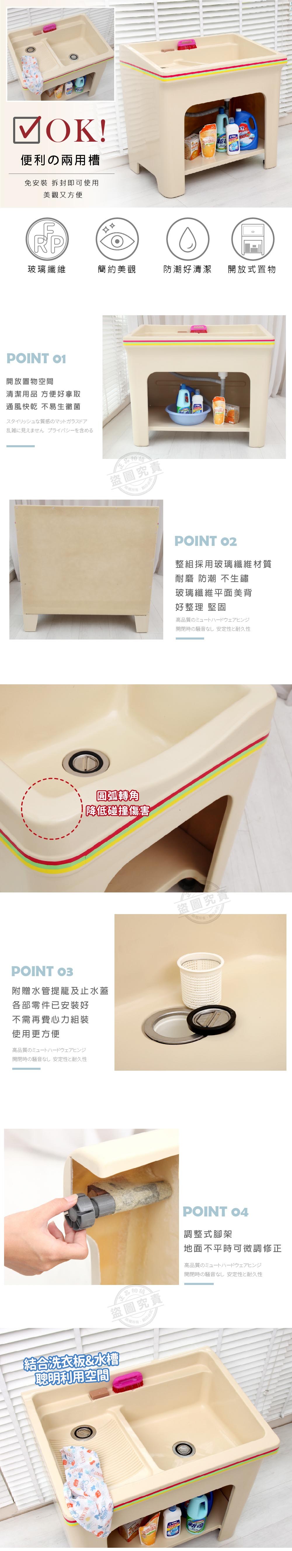 【Abis】日式防水防潮FRP玻璃纖維單槽大型75CM洗衣槽-2入