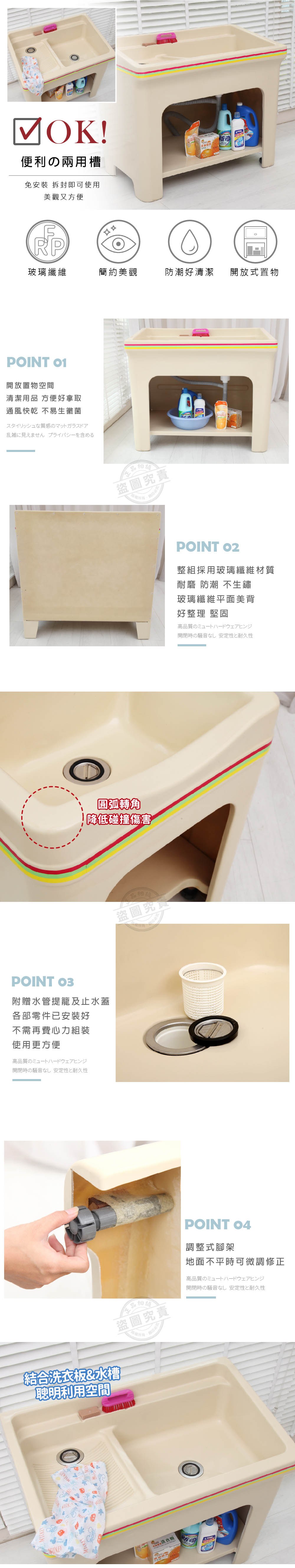 【Abis】日式FRP玻璃纖維一體成型單槽加大型90CM洗衣槽-2入
