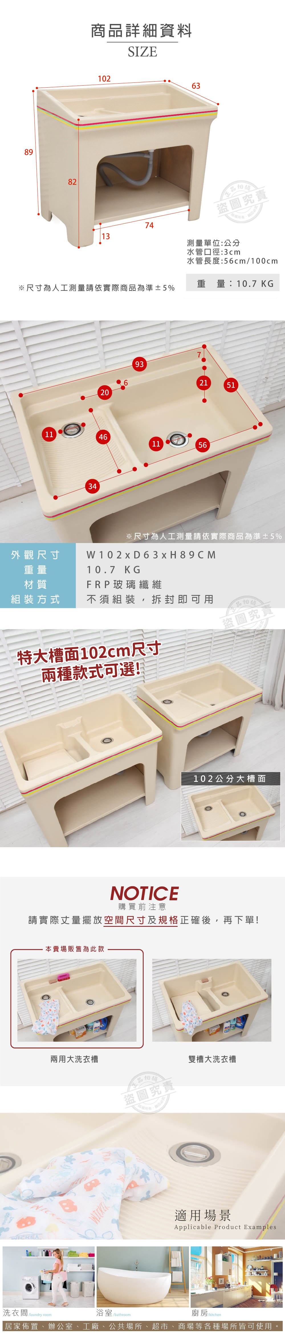 【Abis】日式防水防潮FRP玻璃纖維兩用特大型102CM洗衣槽-1入