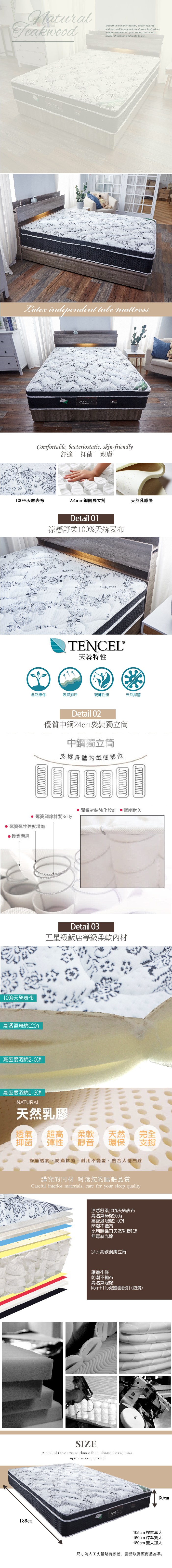 【藤原傢俬】飯店專用款天絲乳膠硬式獨立筒床墊(雙人加大6尺)6尺