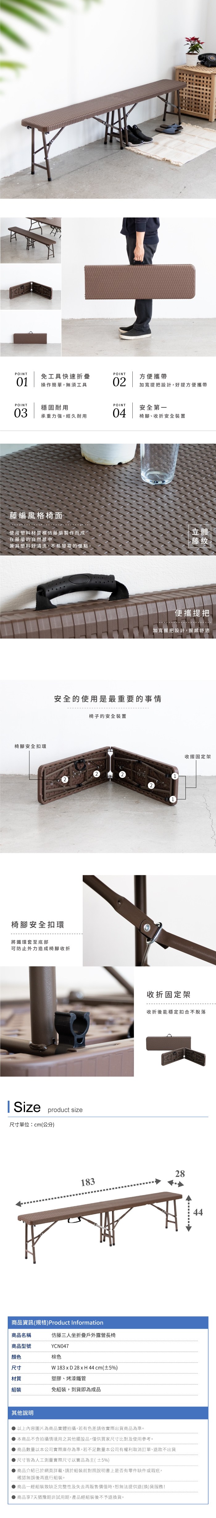 【Amos】120*60仿藤手提折疊戶外露營餐桌棕色