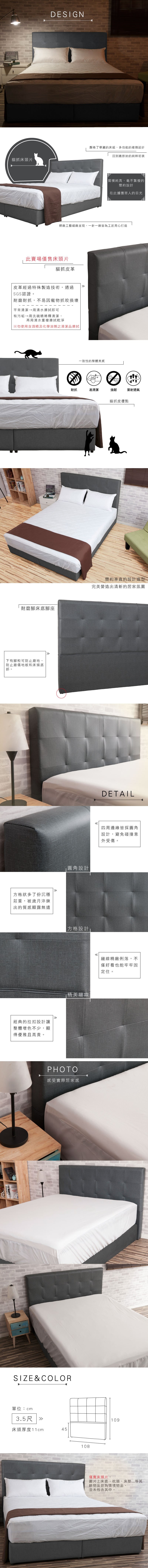 IHouse-修傑凱 簡約 貓抓皮床頭片 雙人5尺鐵灰色#707-01