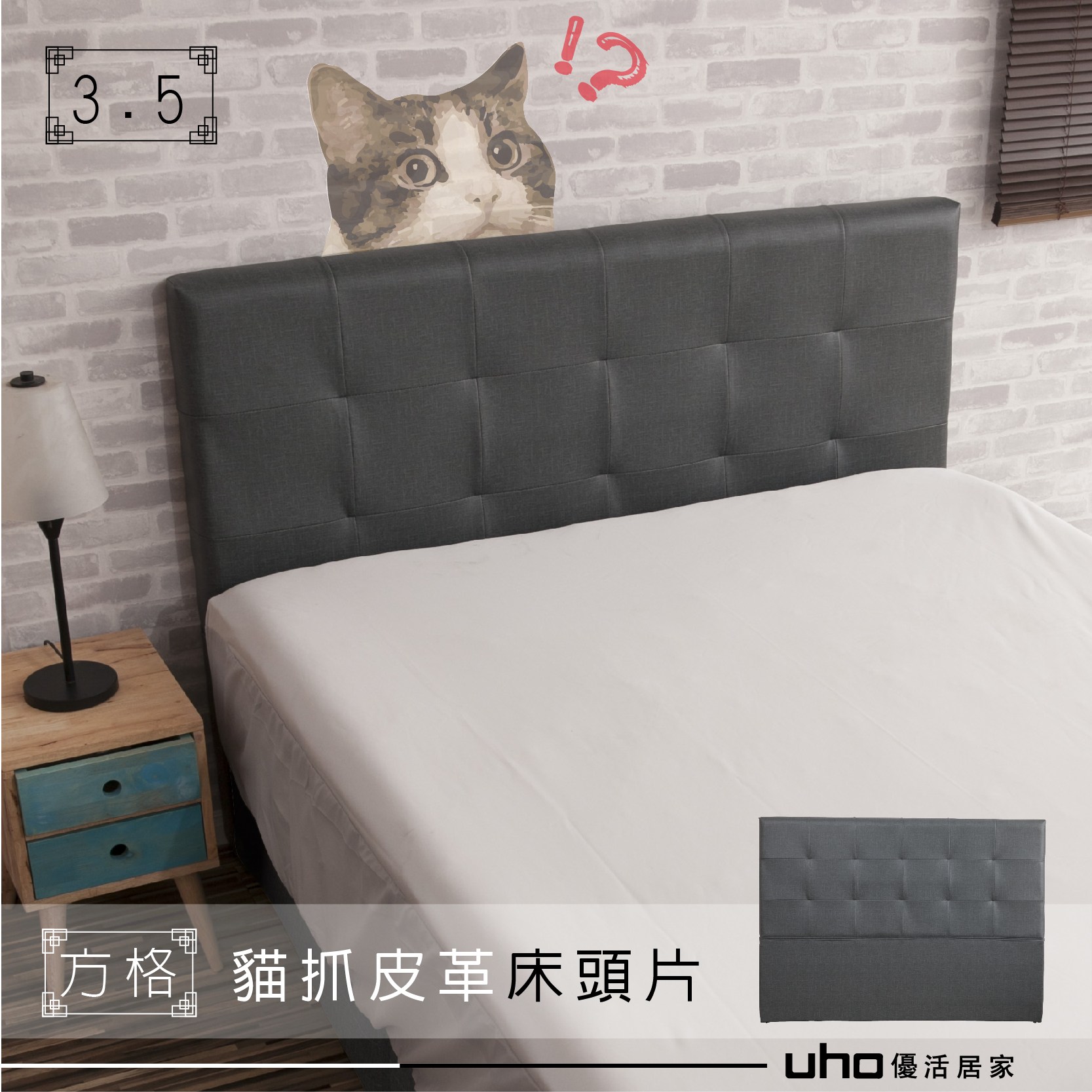 【UHO】派克-方格貓抓皮革3.5尺單人床頭片83灰