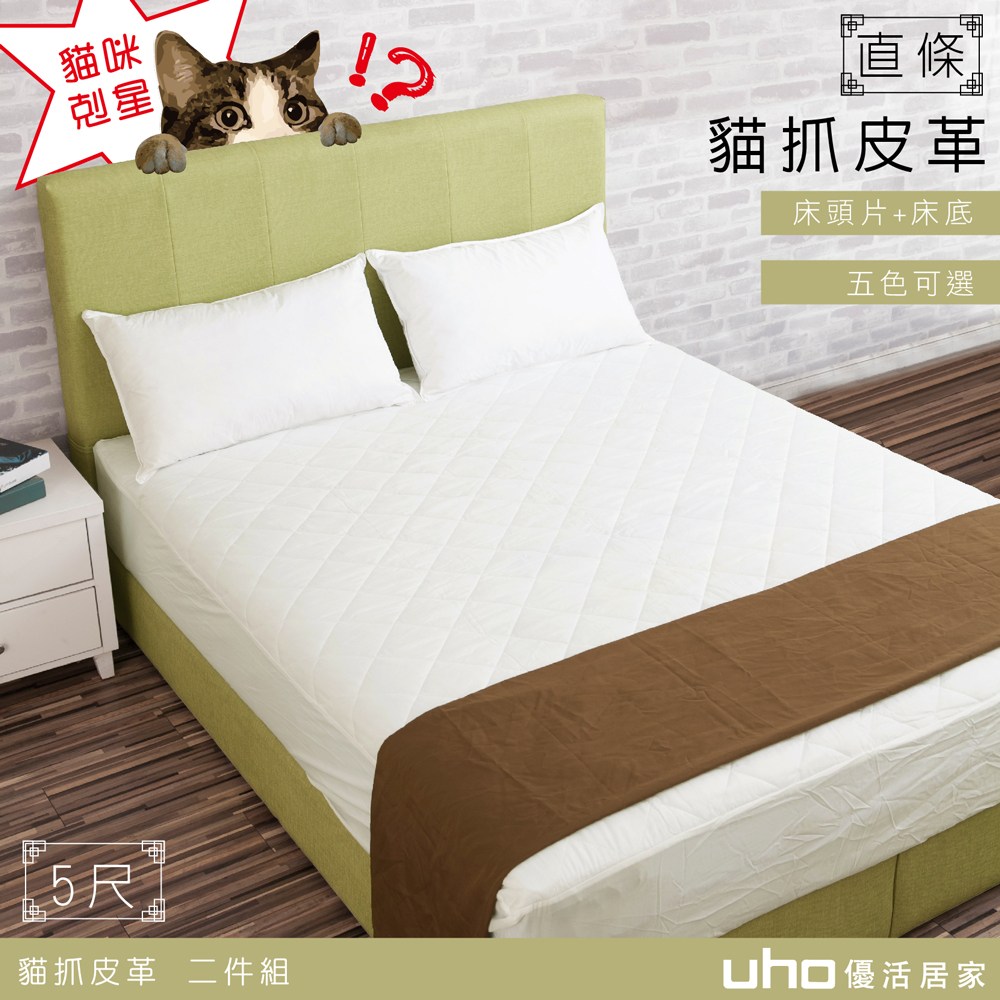 【UHO】皇家貓抓皮2件組(床頭片+床底)-5尺雙人03綠