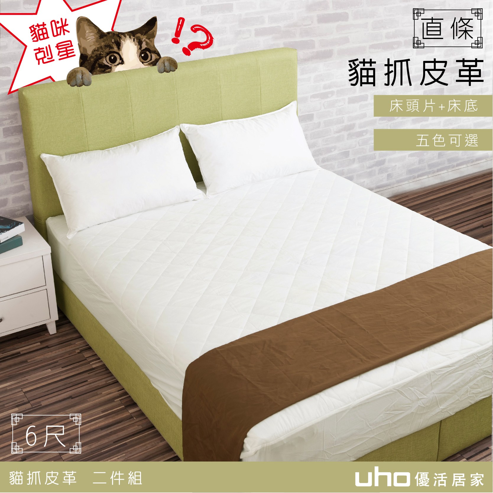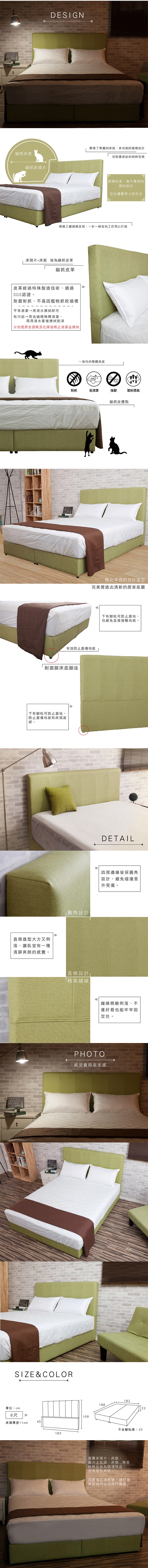 【UHO】皇家貓抓皮2件組(床頭片+床底)-6尺雙人03綠