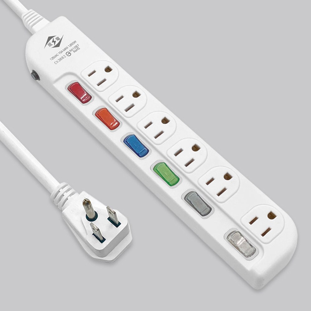 【威電】CK-3662-6 3孔6開6插 加大間距 延長線 6尺/1.