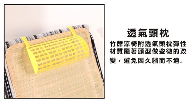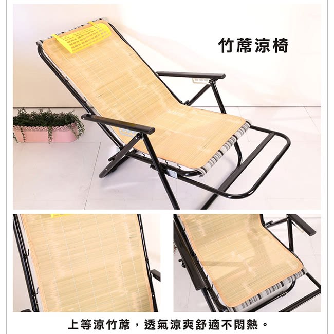 午後的時光,坐在庭院下吹著微微的涼風,是多麼舒服的享受。此時你最不可缺少的就是這張『五段式涼椅/躺椅/折疊椅』,我們特別選用特選天然竹片材質製成,五段式椅背調整設計,不論是要坐著看書、躺著休息都能得到最舒適的支撐。此款涼椅最不同的是在使用特選天然竹片,不只維持涼椅最重要的透氣性,更加強了原有涼蓆沒有的彈性,涼椅躺起來更加舒適,符合人體工學。五段式涼椅,簡單好操作,只要幾個步驟就能輕鬆展開。此款涼椅輕巧容易收納,不只是放置於家中或庭院,還能攜帶外出郊遊、烤肉,任何活動都少不了它!