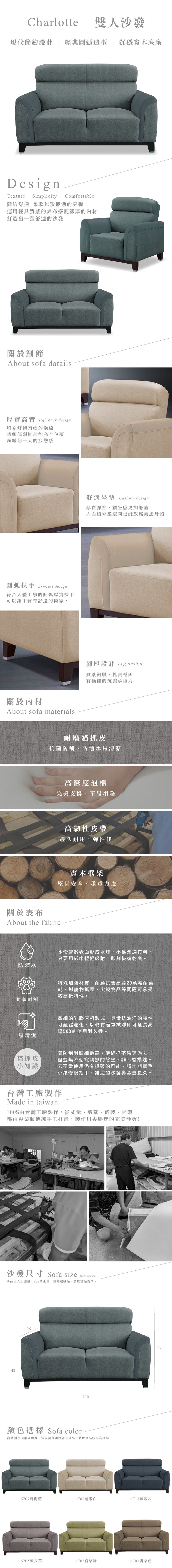【IDEA】皮諾加深雙靠枕舒適雙人沙發/布沙發