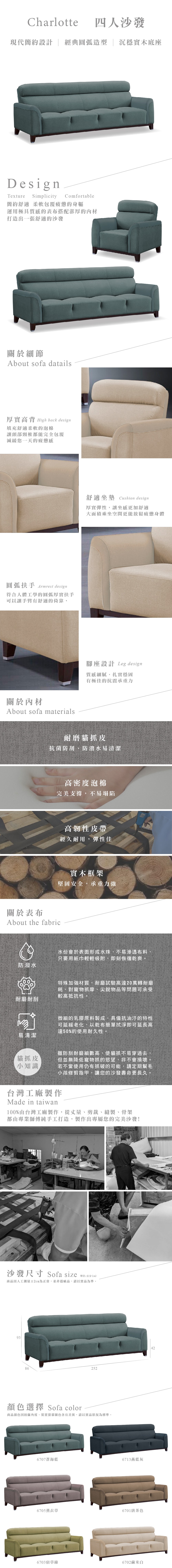 【本木】MIT台灣製 夏洛特強韌耐刮貓抓皮4人坐沙發+腳繭米色#6702+晨