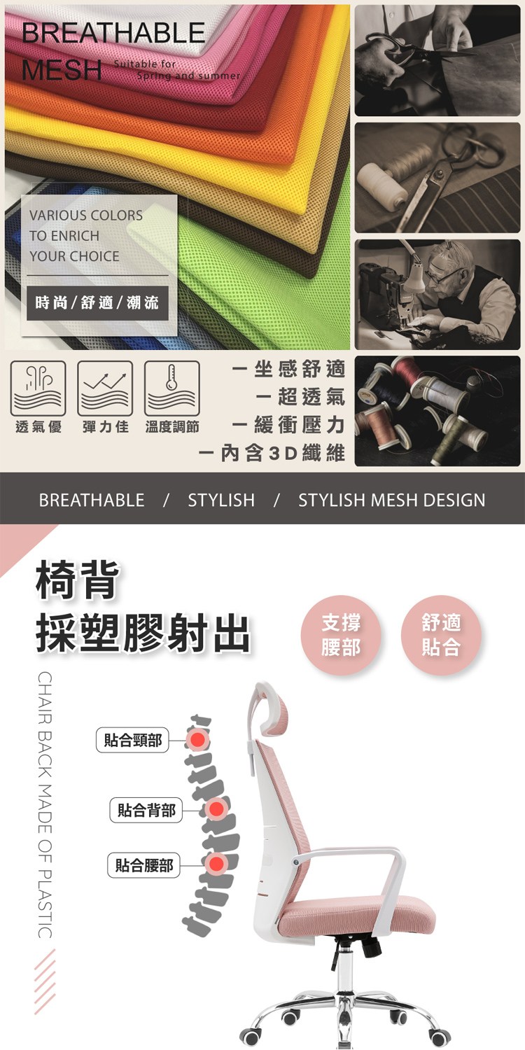 材質:網布+塑膠射出+電鍍五爪腳+PU滑輪