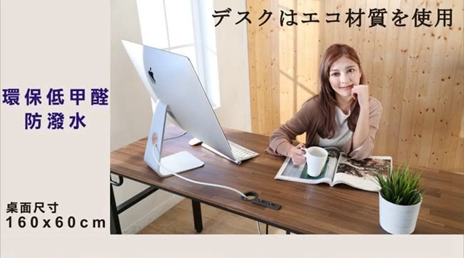 BuyJM工業風低甲醛防潑水附插座穩重工作桌寬160x60x79公分