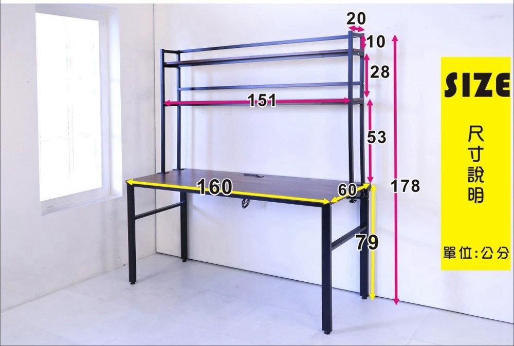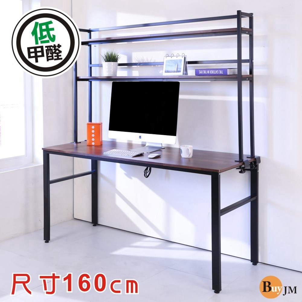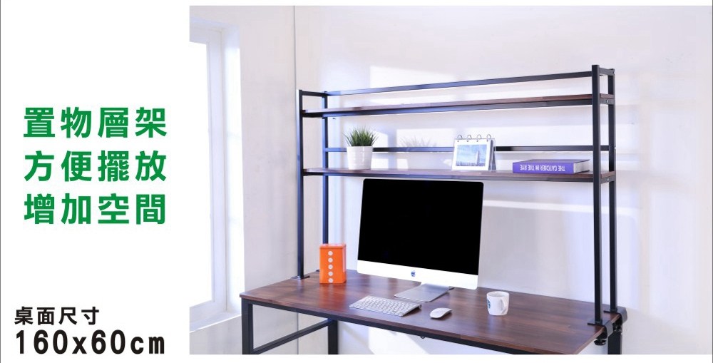 此款是特別針對小坪數房間所設計出的《BuyJM》防潑水工作桌/電腦桌,桌板使用PVC木紋紋路貼皮,160公分寬大桌面設計,桌角安全無銳角,尺寸加大使用空間更多元,桌子下也有大空間可隨意收納擺放電腦主機等等,空間隨你需求輕鬆變。桌面板材質使用歐盟標準E1等級木板,讓消費者遠離甲醛,外型巧妙將自然與工業風鐵管元素結合,沒有突兀的不協調感,反而創造出空間的活力自信!。現在更有升級版,增加上層層架,可當書架使用,收納書本、事務機等用品,收納功能更加分。