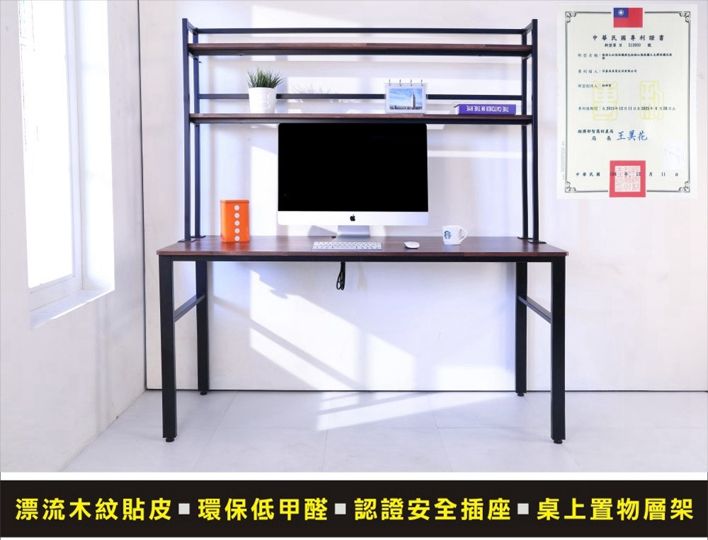 【澄境】120公分大桌面附插座層架電腦工作桌 台灣製漂流木紋
