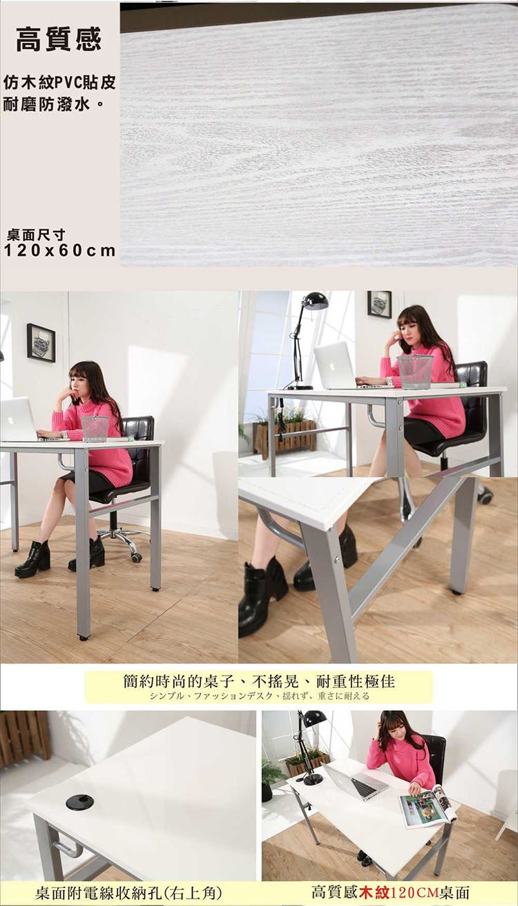 《BuyJM》木紋白低甲醛120公分穩重型工作桌/電腦桌附電線孔I-B-DE087WH