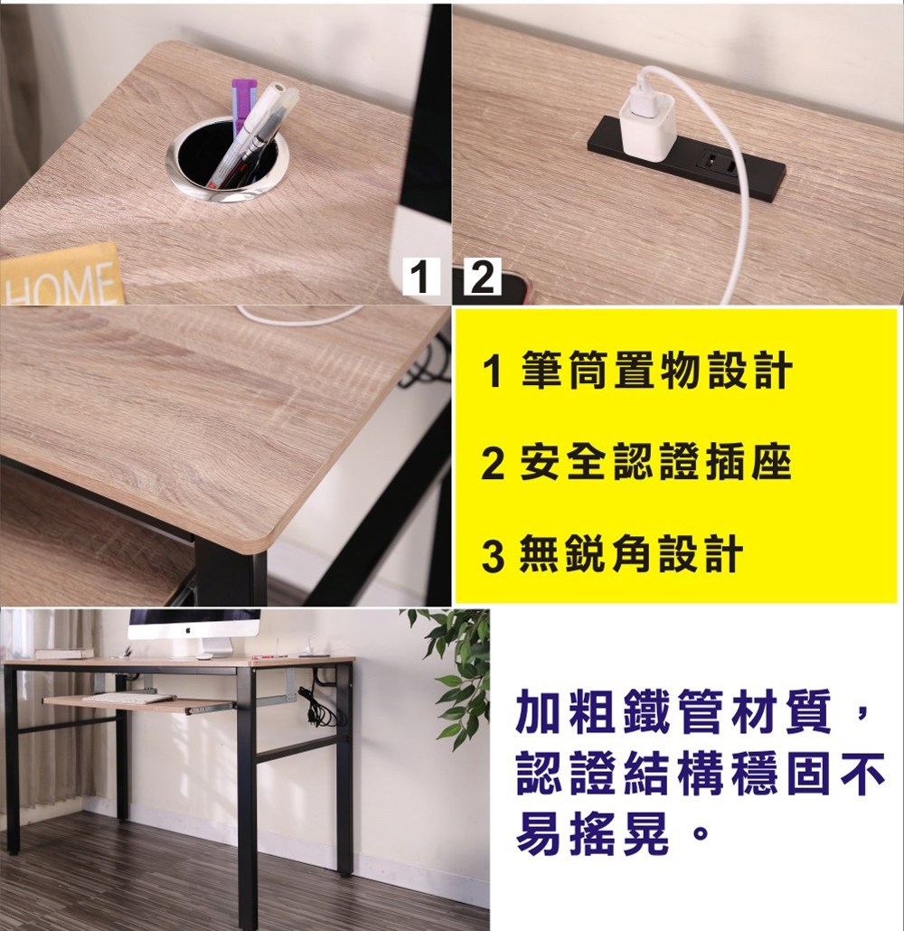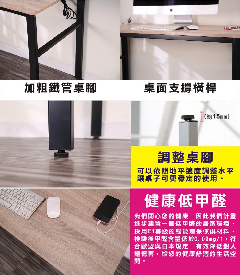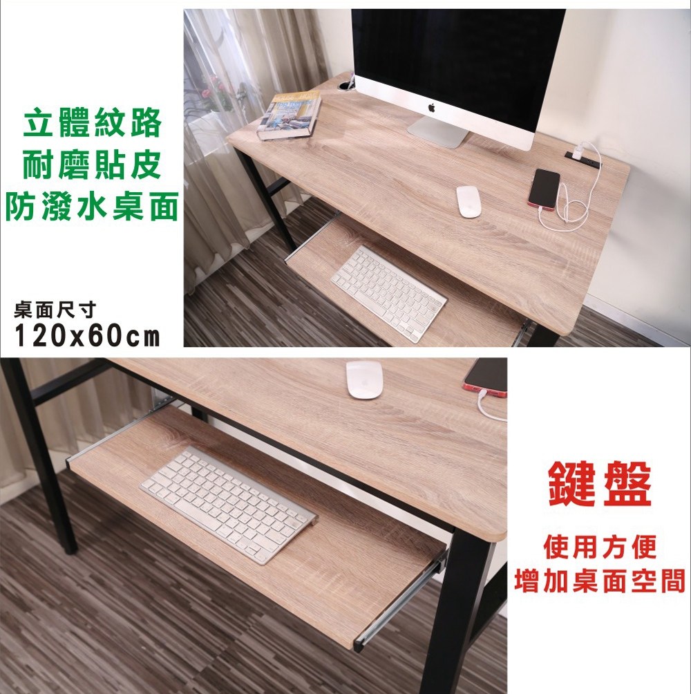 此款是特別針對小坪數房間所設計出的《BuyJM》防潑水工作桌/電腦桌,整個造型為防潑水PVC立體紋路貼皮桌面,寬120公分桌面設計,大小適中,桌板安全無銳角,使用空間更多元,擺放電腦後,還有桌面空間可供閱讀、寫作使用,桌子下也有空間可隨意收納擺放電腦主機等等,空間隨你需求輕鬆變。桌面板材質使用歐盟標準E1等級木板,讓消費者遠離甲醛,外型巧妙將自然與工業風鐵管元素結合,沒有突兀的不協調感,反而創造出空間的活力自信!單鍵盤架設計,增加桌面空間,,實用性超高,經濟又實惠!實品超精緻,質感極佳,使用超方便,真的非常的推薦哦!