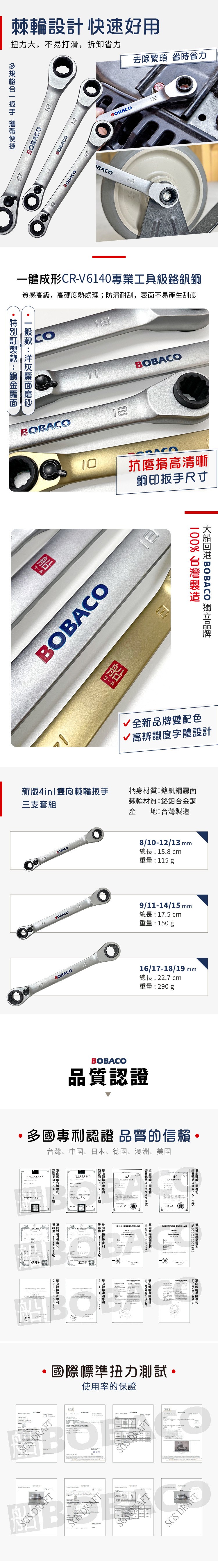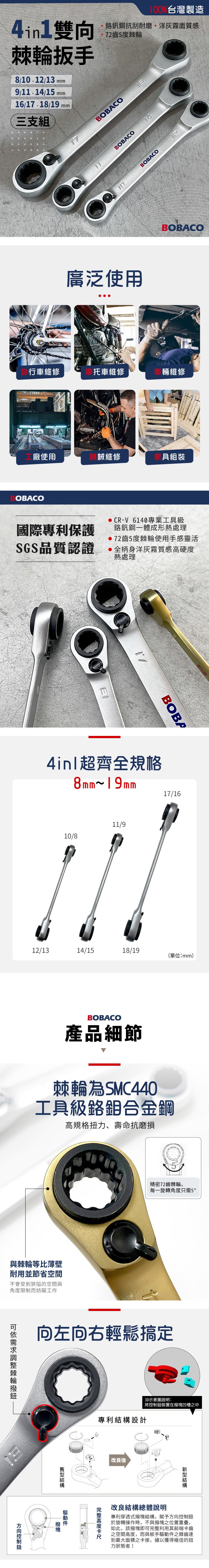 【大船回港】新版4in1雙向棘輪扳手 三支組 8-19mm