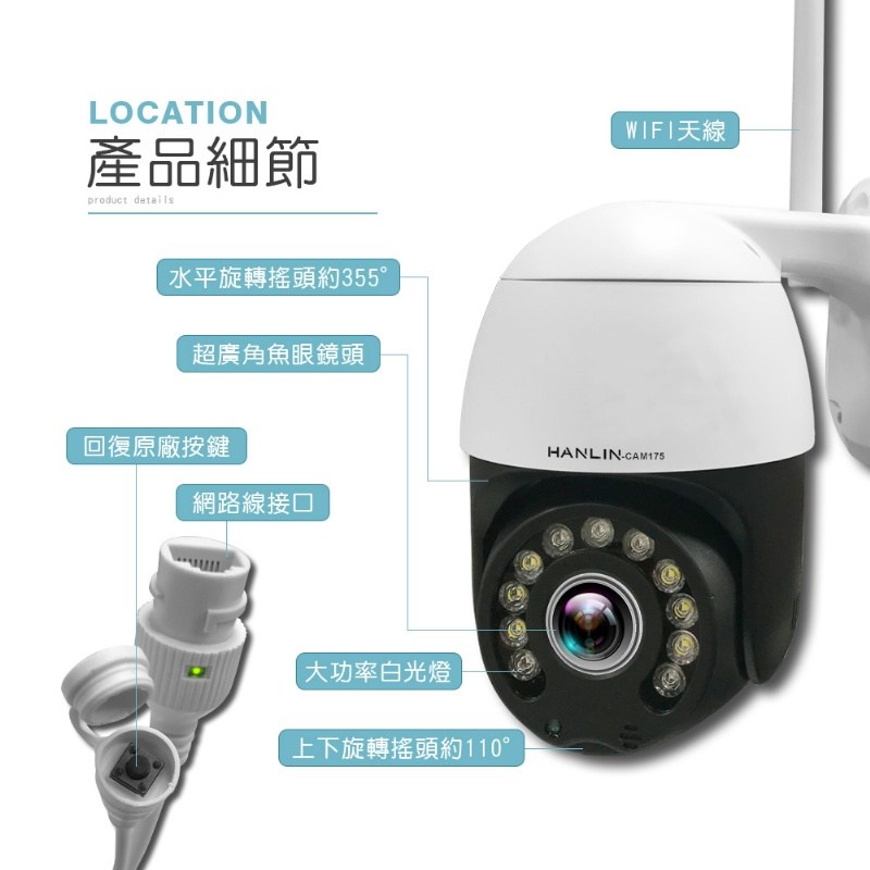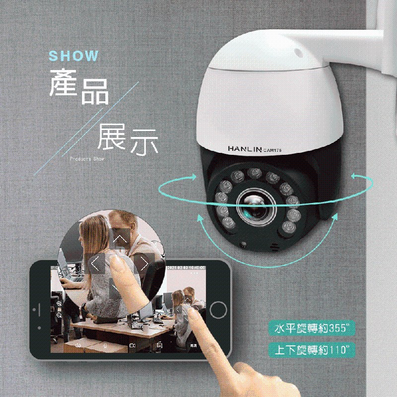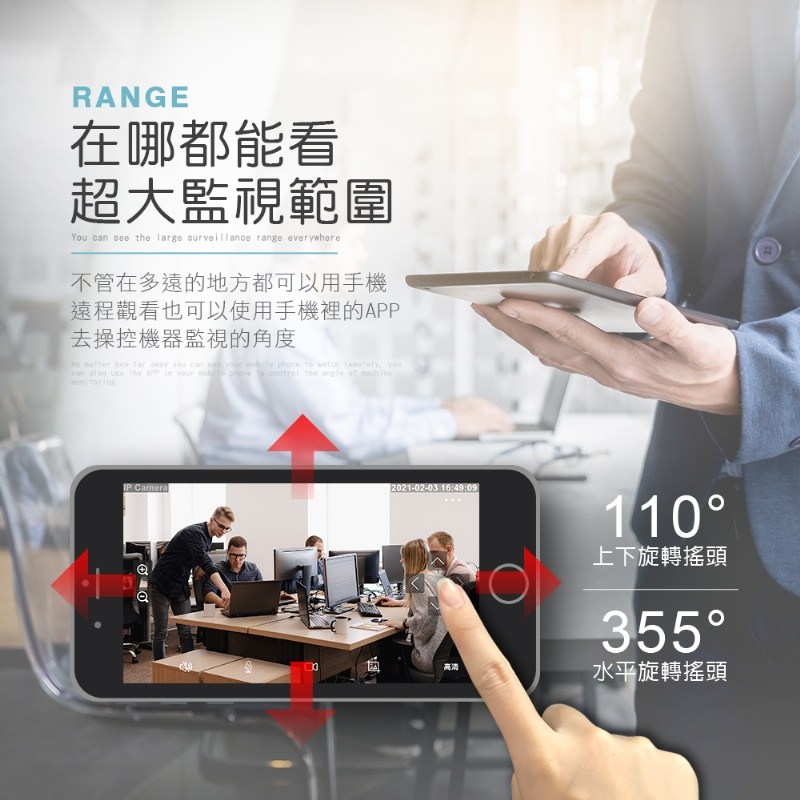 2.超大監視範圍: 上下旋轉搖頭110度 / 水平旋轉搖頭355度