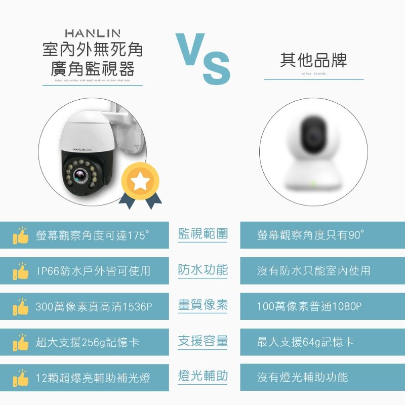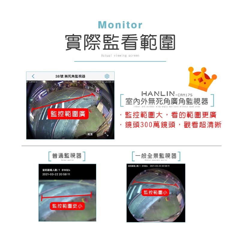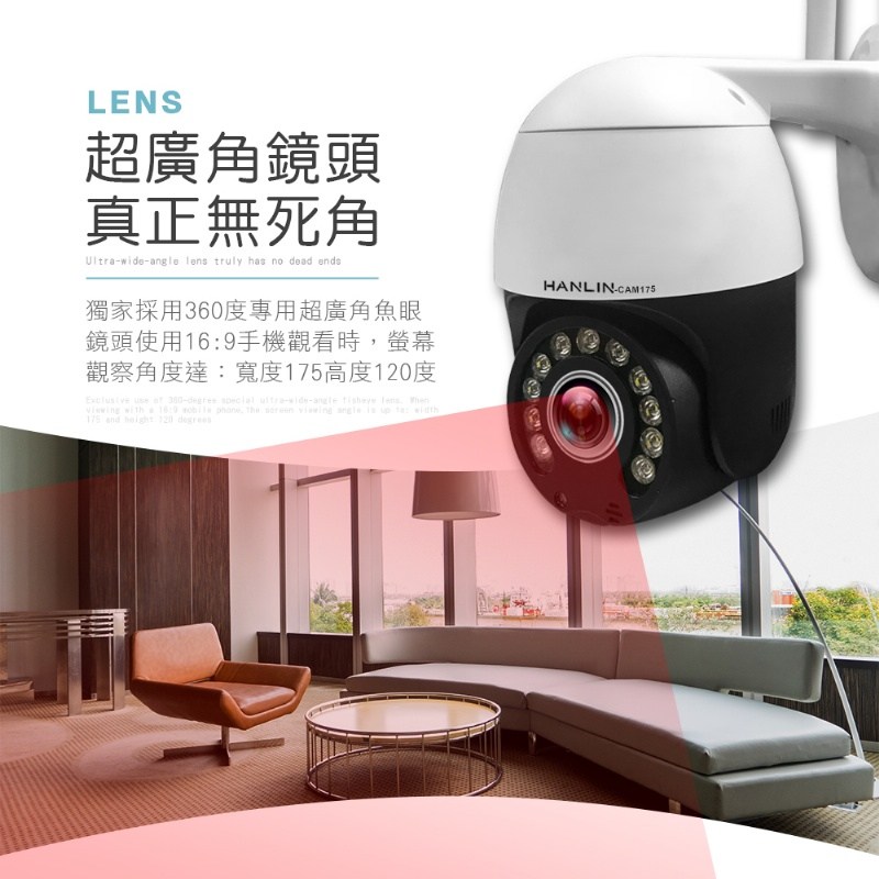 鏡頭: 高清300萬 , 360度魚眼鏡頭 (寬觀測175度)