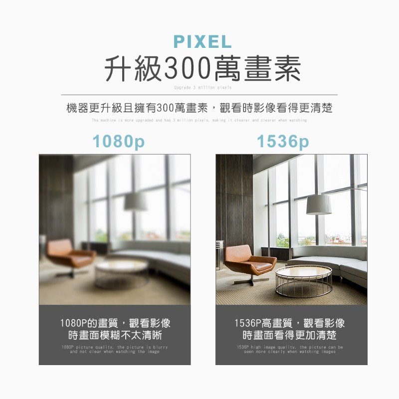 3.高像素300萬鏡頭~真高清1536P