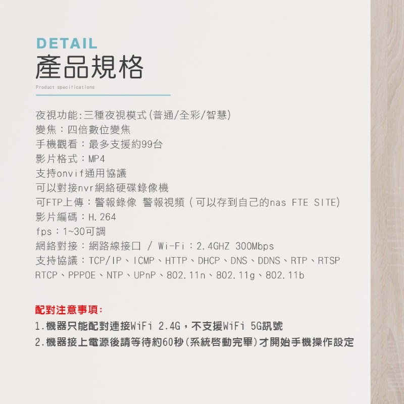 網絡對接: 網路線接口 / Wi-Fi:2.4GHZ 300Mbps