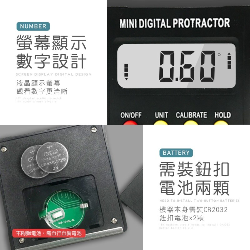 【數顯強磁】電子角度儀 水平儀 角度尺 數顯傾角盒 0-360°測量 金屬機身 強磁吸附 工業建築汽修專用