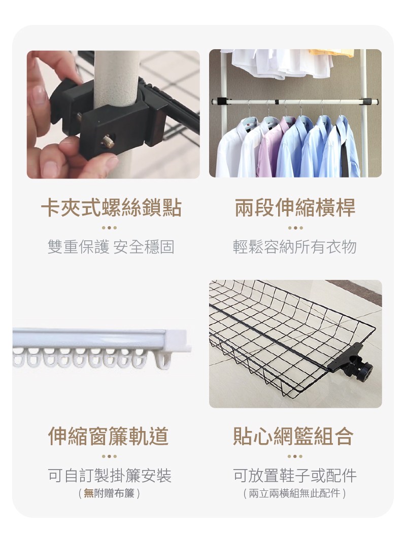 【慢慢家居】可掛簾免打孔-頂天立地掛衣架 (四立五橫兩網籃)四立五橫兩網籃