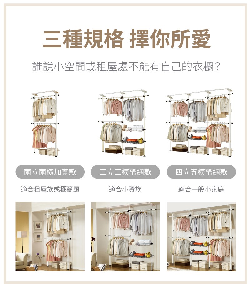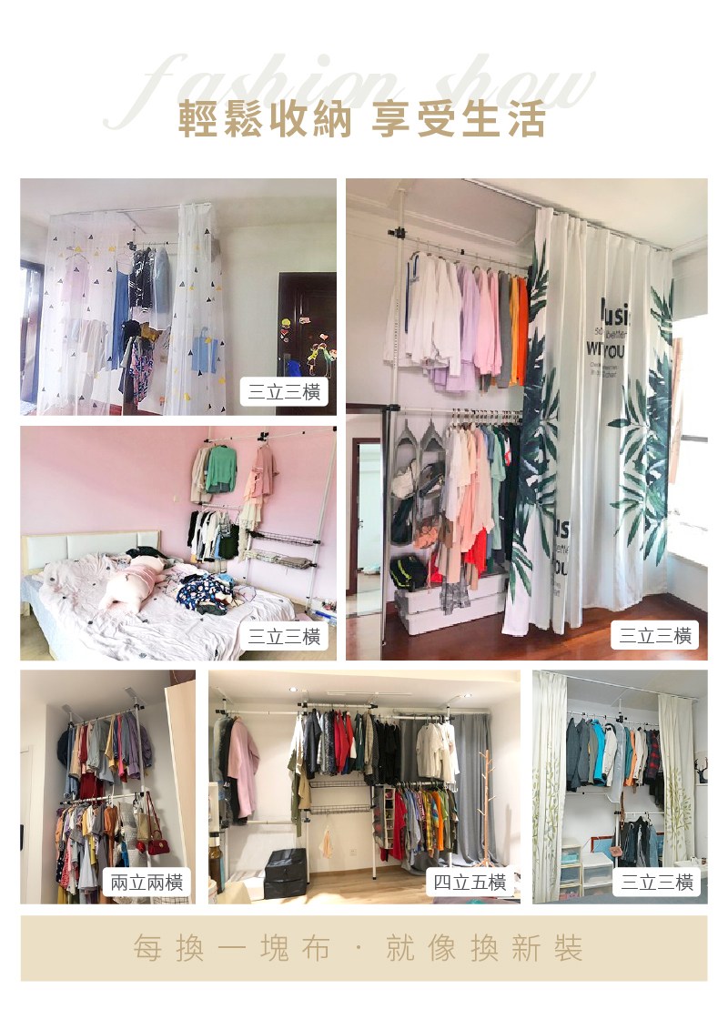 【慢慢家居】可掛簾免打孔-頂天立地掛衣架 (兩立兩橫加寬)兩立兩橫加寬