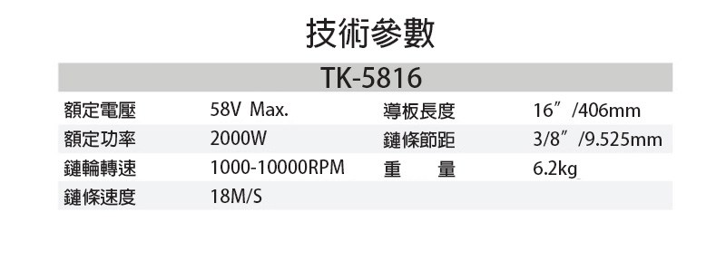 【TAKANO 高野】58V無刷電動鏈鋸(TK5816)