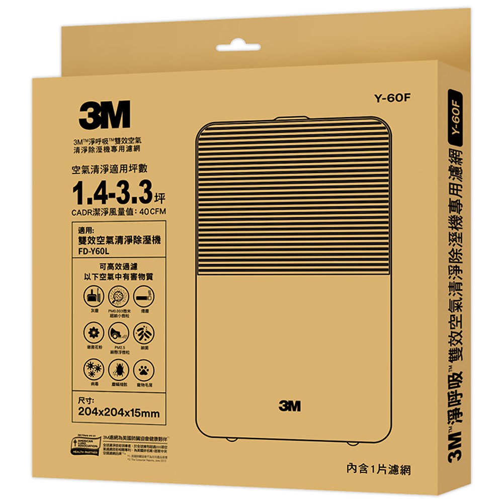 3M 淨呼吸 雙效空氣清淨除溼機 FD-Y60L專用濾網 型號Y-60F
