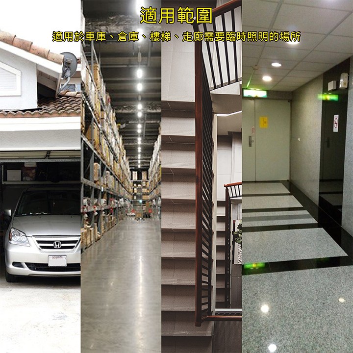 - 適用走廊、樓梯、地下室、車庫、倉庫等場所的自動照明。