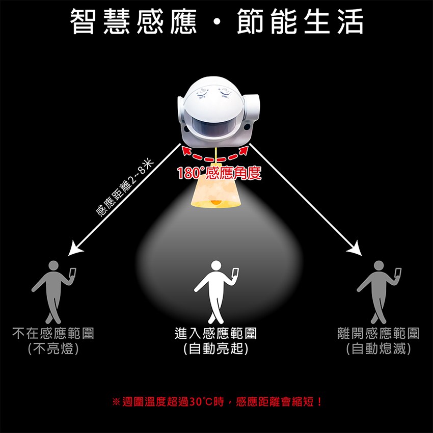 - 感應距離<8米,超過30℃靈敏度會降低。