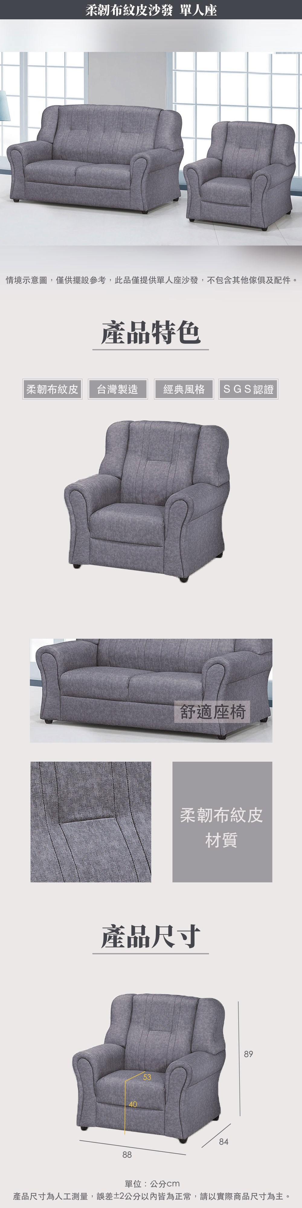 Homelike 喜家居單人座貓抓皮沙發(2036)