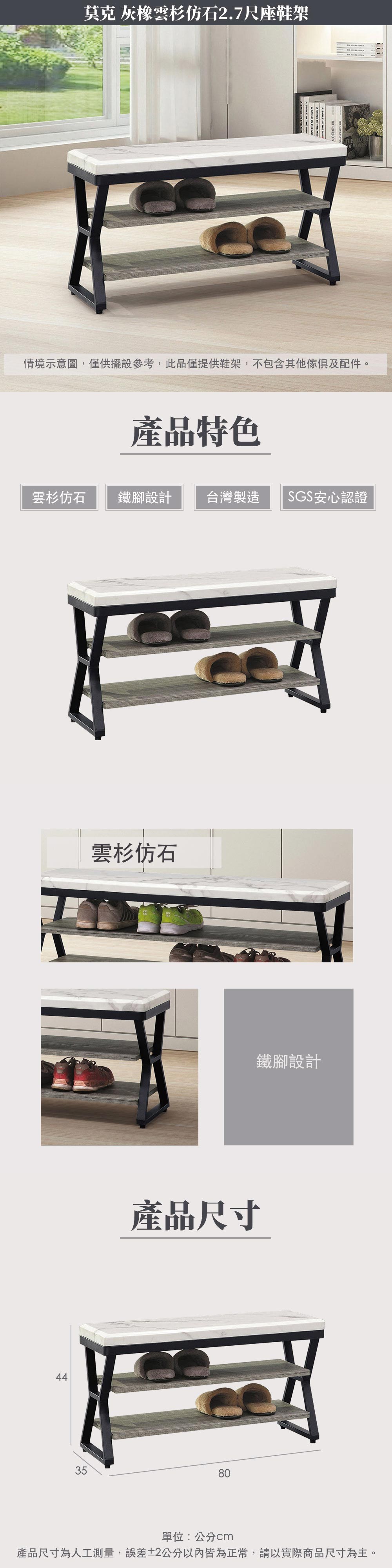 Homelike 喜家居仿石紋2.7尺坐式鞋櫃/穿鞋椅(2050)