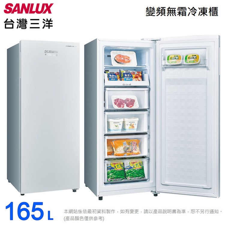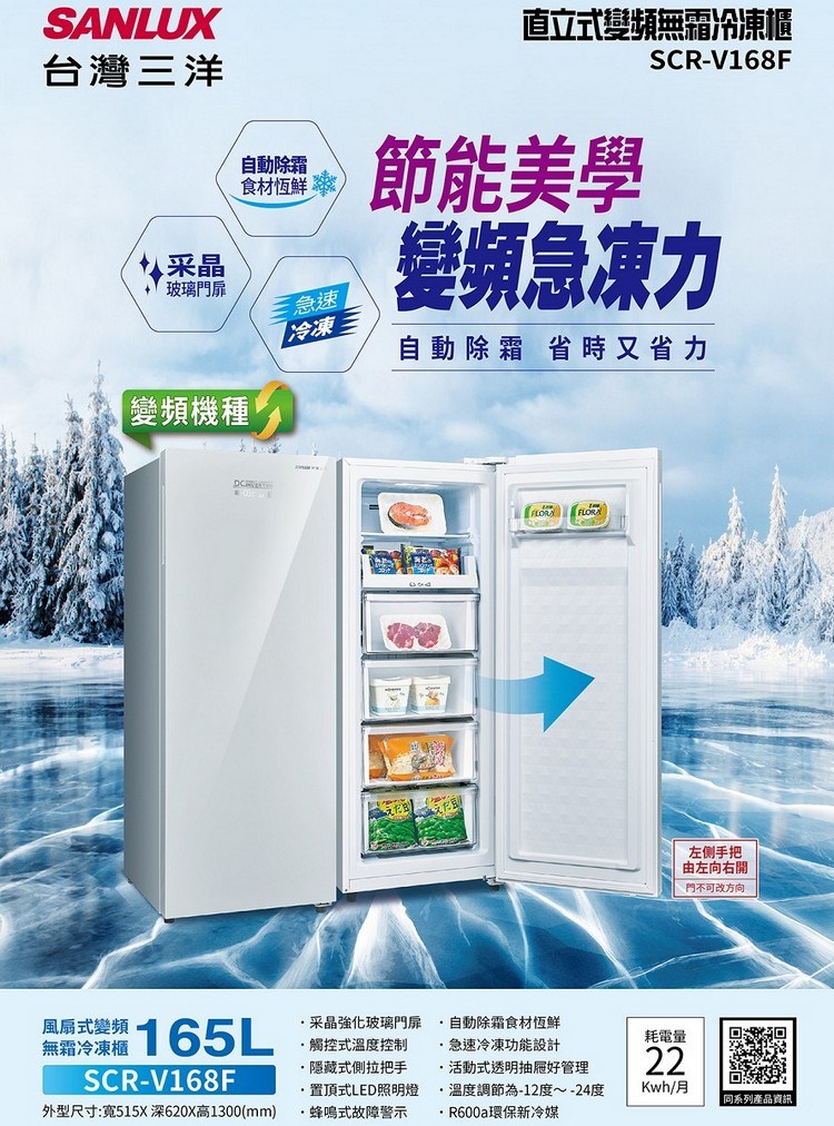 SANLUX台灣三洋165公升直立式變頻無霜冷凍櫃 SCR-V168F~含拆箱定位