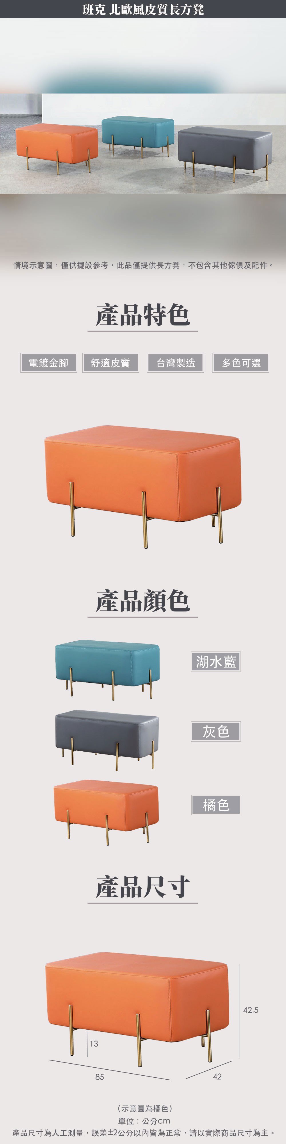 IHouse-班克 北歐風皮質長方凳湖水藍
