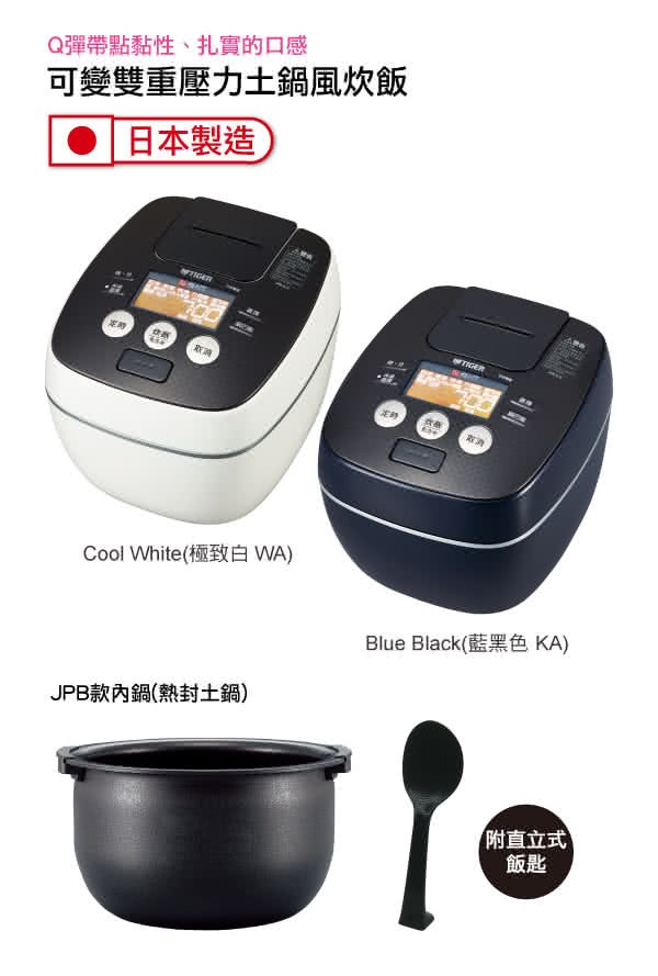 TIGER 虎牌 可變式雙重壓力IH炊飯電子鍋 JPC-G10R 遠赤9層 灶台熱封土鍋塗層 日本製造 黑色