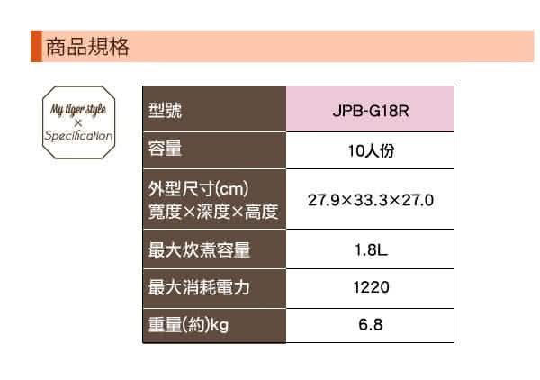 【虎牌】雙重壓力IH炊飯10人份電子鍋(JPB-G18R)