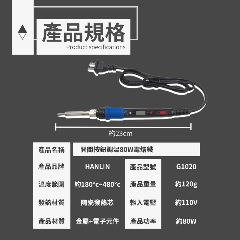| HANLIN-G1020-80W 開關按鈕調溫80W電烙鐵