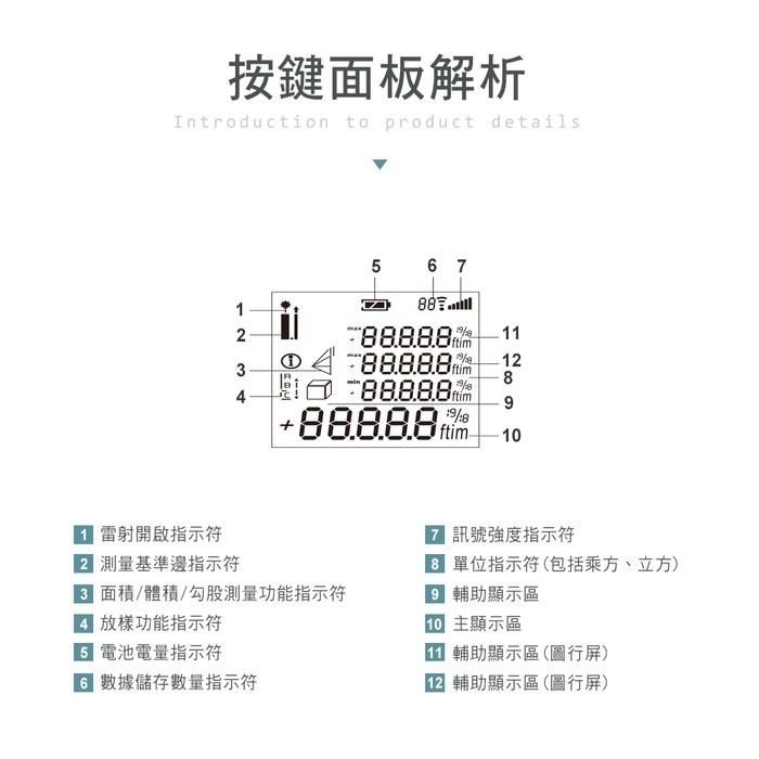 12.可選雷射測量起點 (A包含機身 / 2不包含機身)