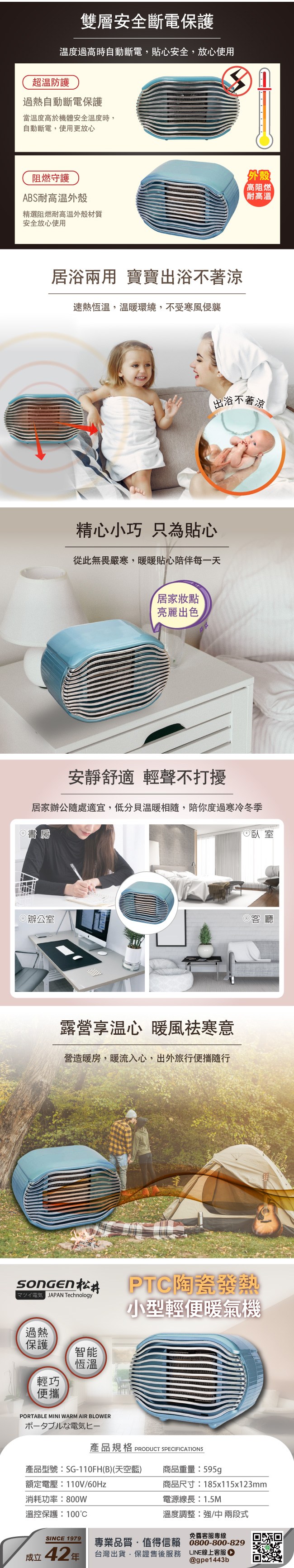 【日本SONGEN】松井PTC陶瓷發熱輕便電暖器SG-110FH(G)