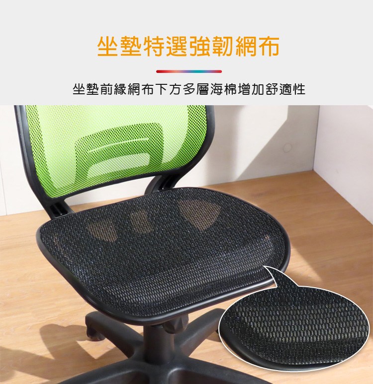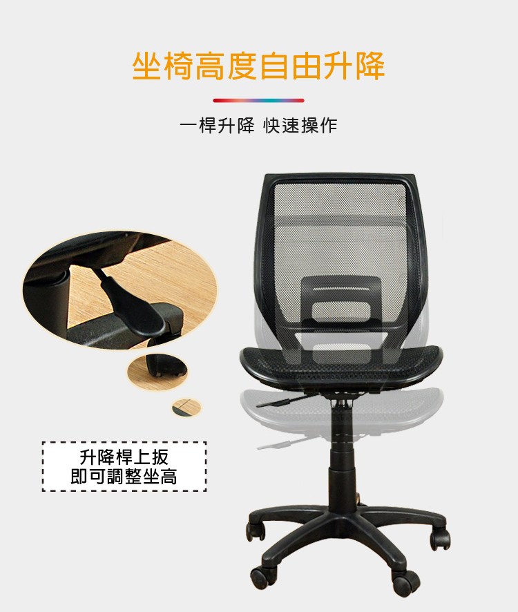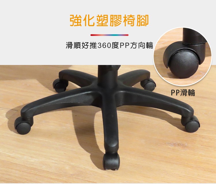 商品材質:強化五爪椅腳PP輪+加粗鋼管+透氣網布