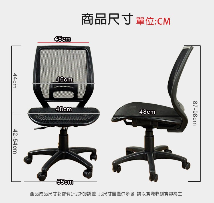 ※座高42-52適合一般辦公室桌子需求,如有其他高度需求可洽工廠客製化