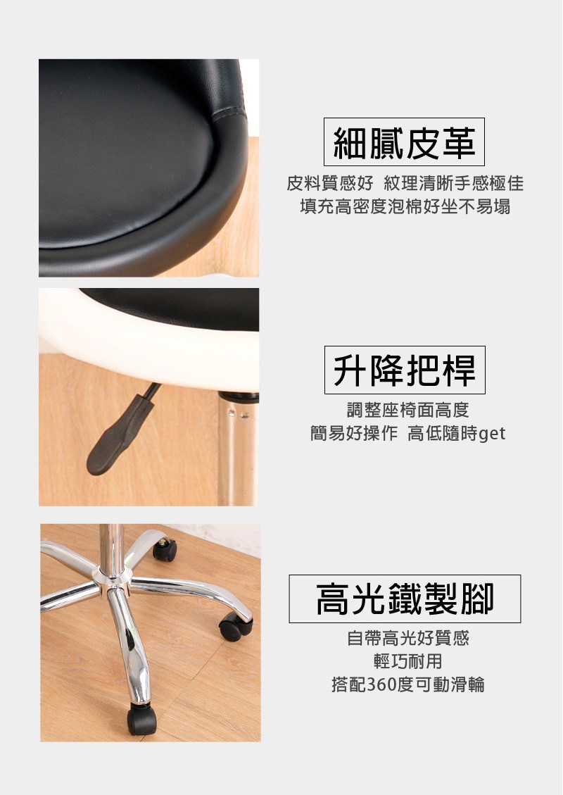 【A1】馬卡龍皮面圓型活動式旋轉電腦椅/美容椅(箱裝出貨)1入黑色