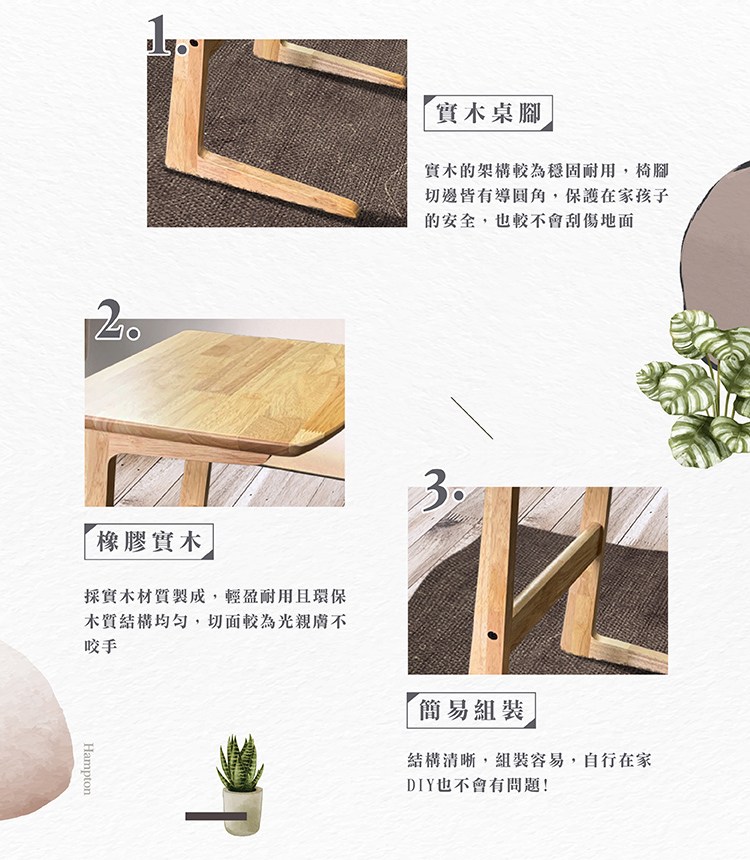 花旗松圓柱腳桌 方桌 餐桌 洽談桌 CU014